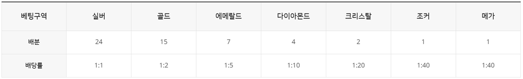 베팅종류/배당률 표