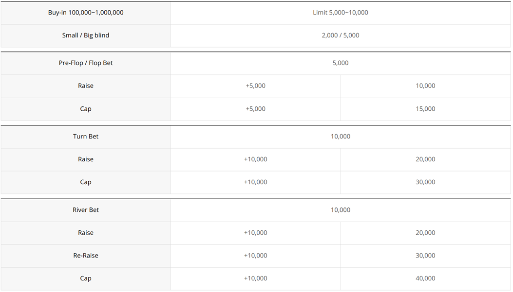 ● 플레이어는 표시된 베팅 한도액을 준수하여야 합니다.