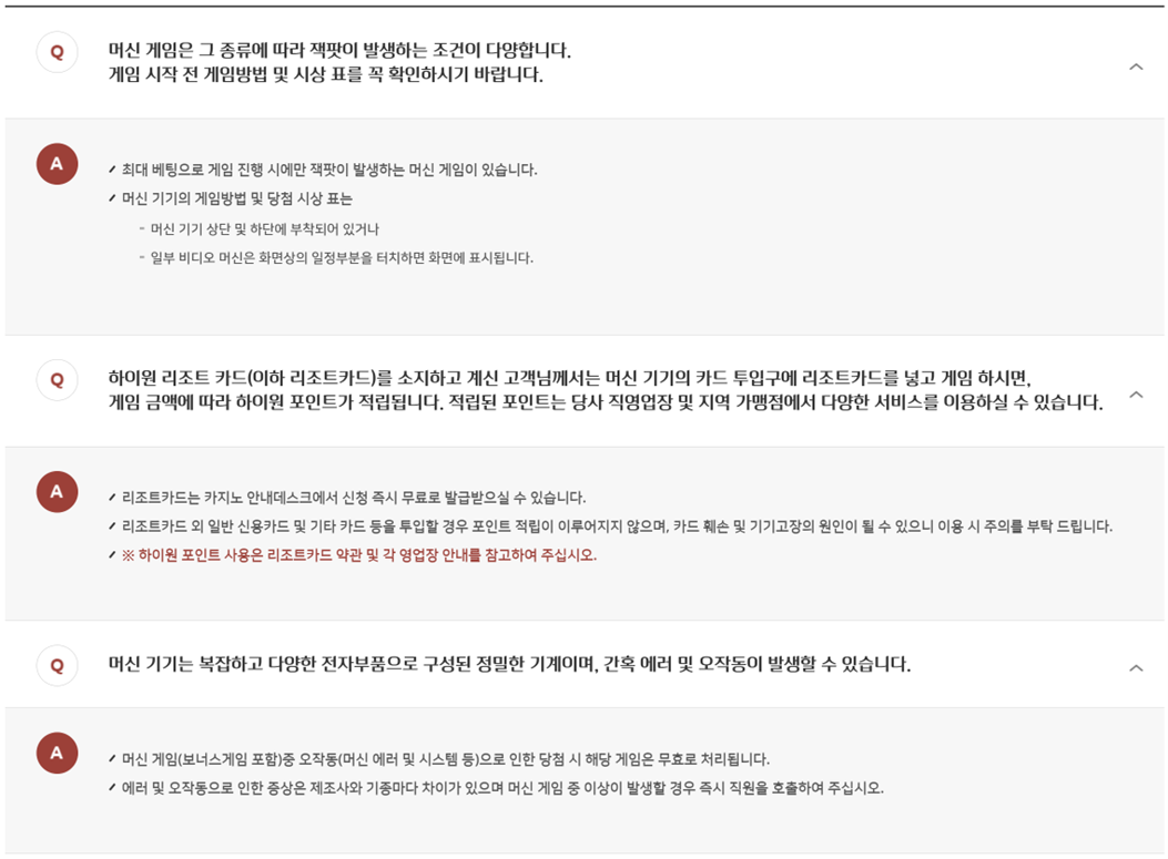 주의두 대 이상 머신을 동시에 이용하는 행위 및 머신 기기에 크레딧을 방치하는 행위는 출입관리지침에 의거하여 출입제한 등의 불이익을 받으실 수 있습니다.